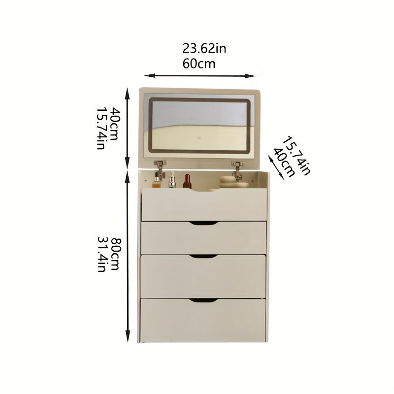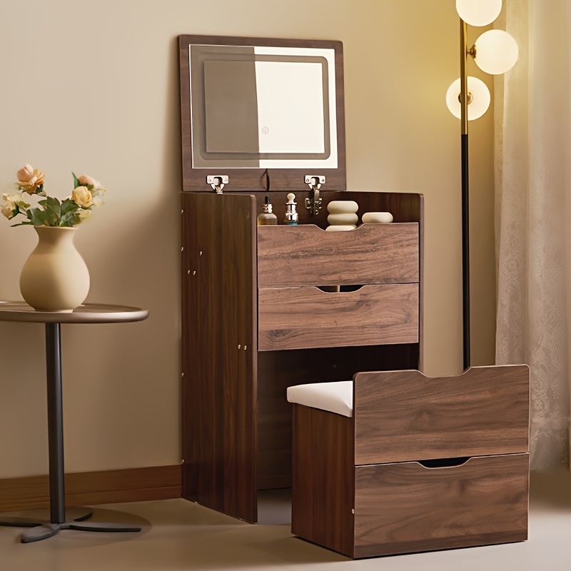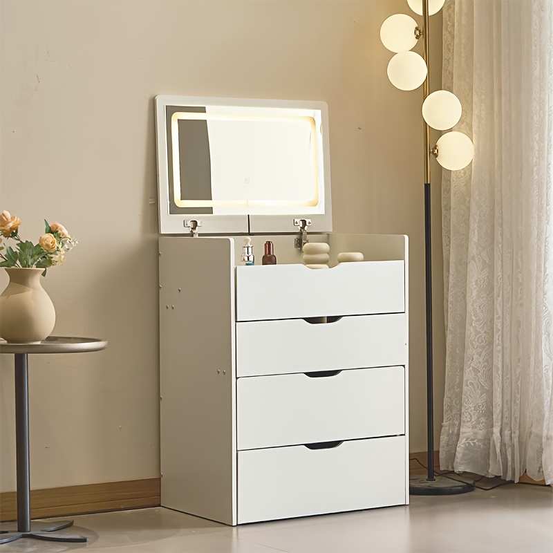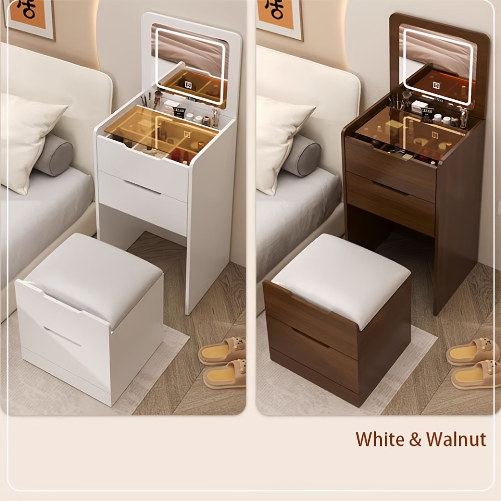 3-in-1 Vanity Desk with Mirror And Lights, Small Vanity Desk Set with Visible Glass Tabletop, 3 Drawers, Storage Bench