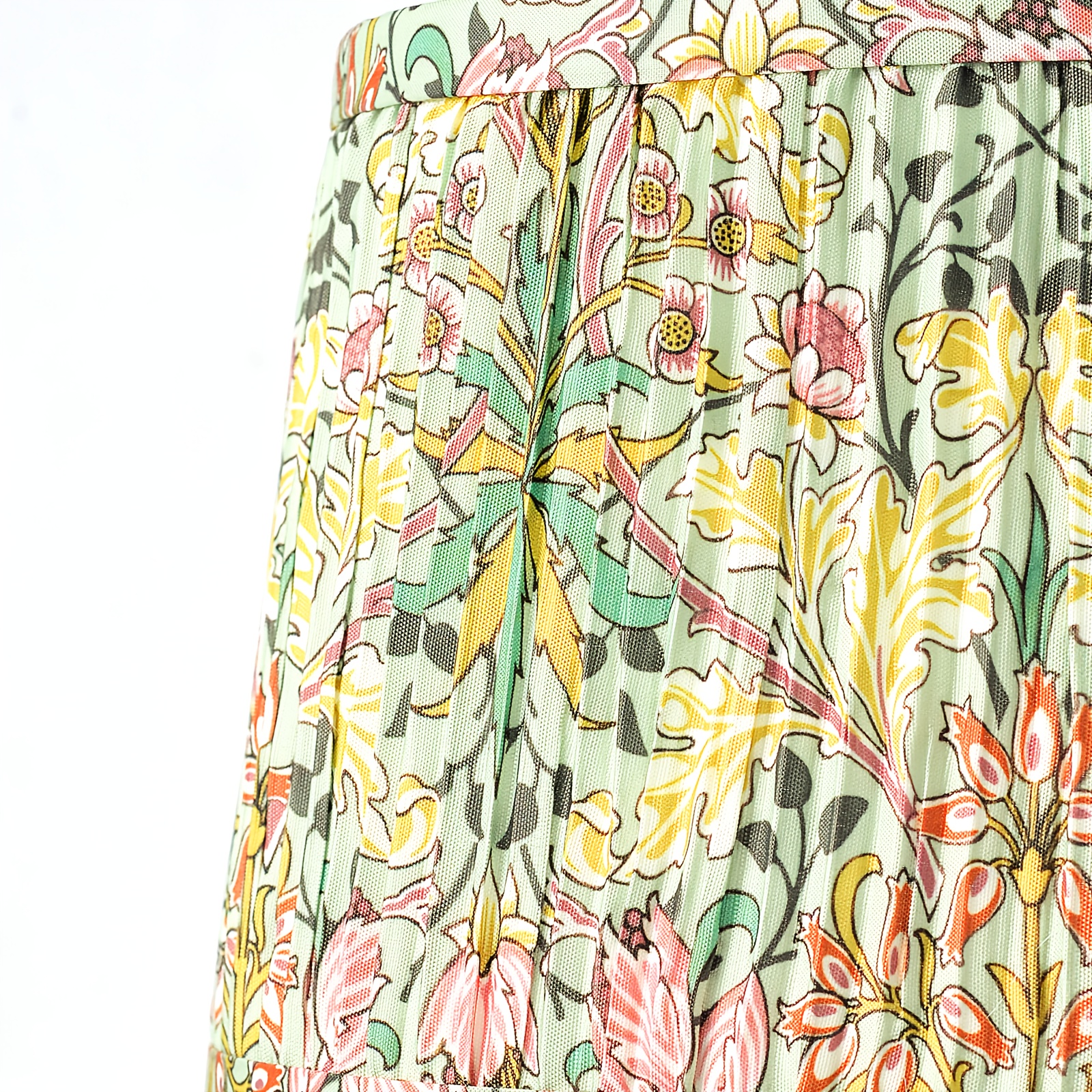 14 Inch Wooden Tripod Table Lamp with Green Ditsy Floral Shade - Cute Boho Nightstand Lamp for Girls Bedroom