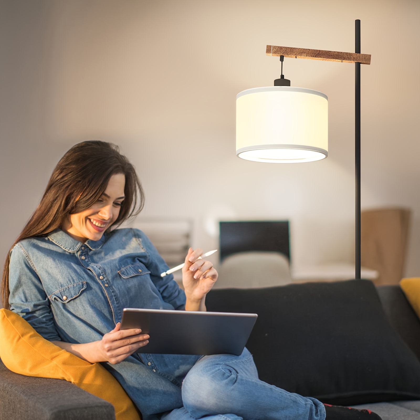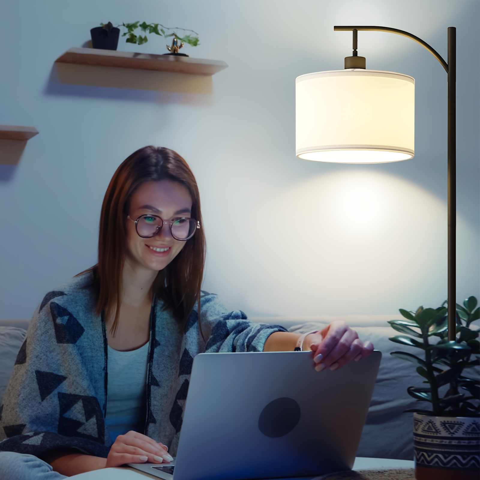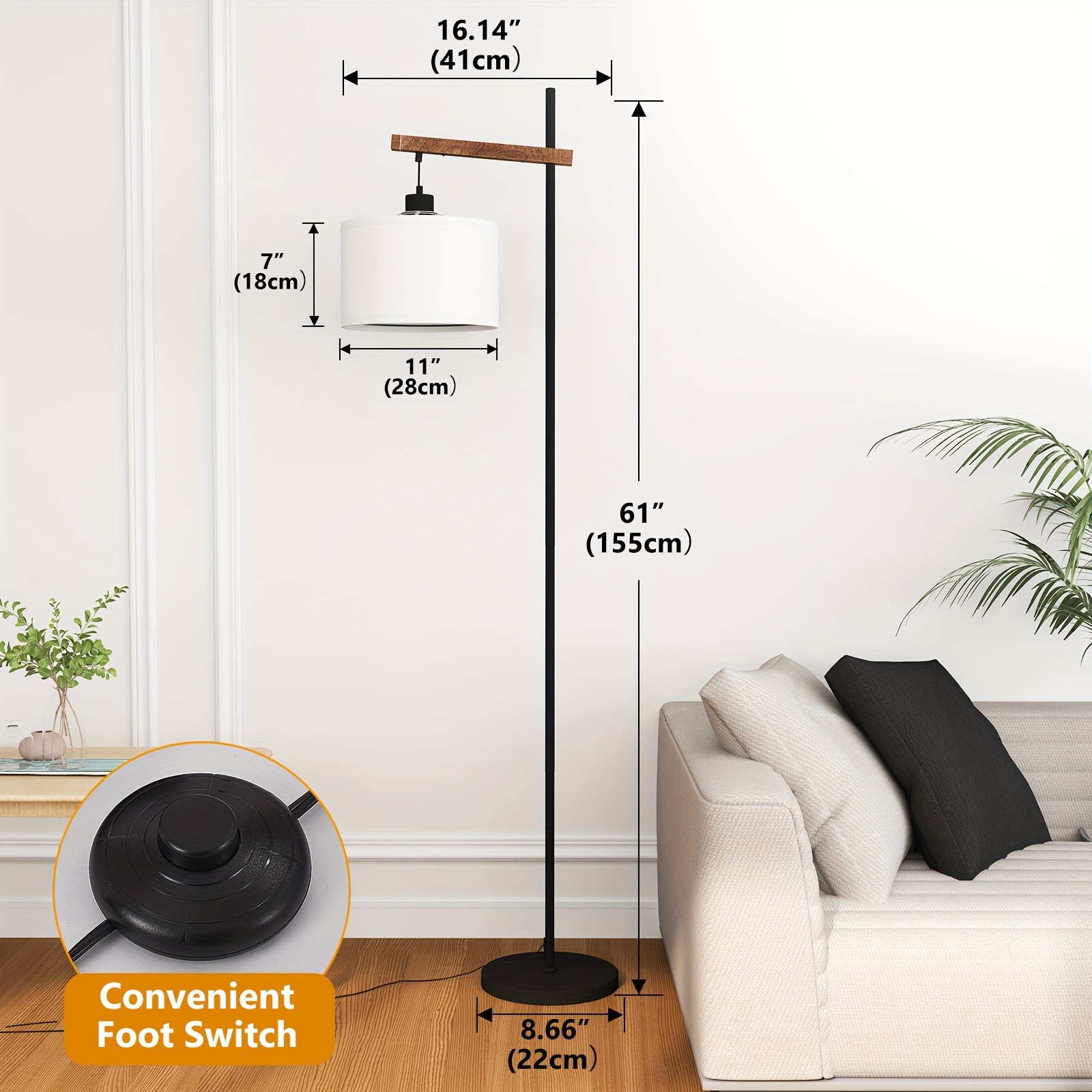 Modern Industrial Floor Lamp With Foot Wwitch - Polished Metal, Includes Beige Shade For Living Room