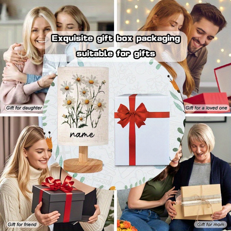 Customizable Name, Text, Three-Color Dimmable Daisy Spring Floral Print Bedside Lamp