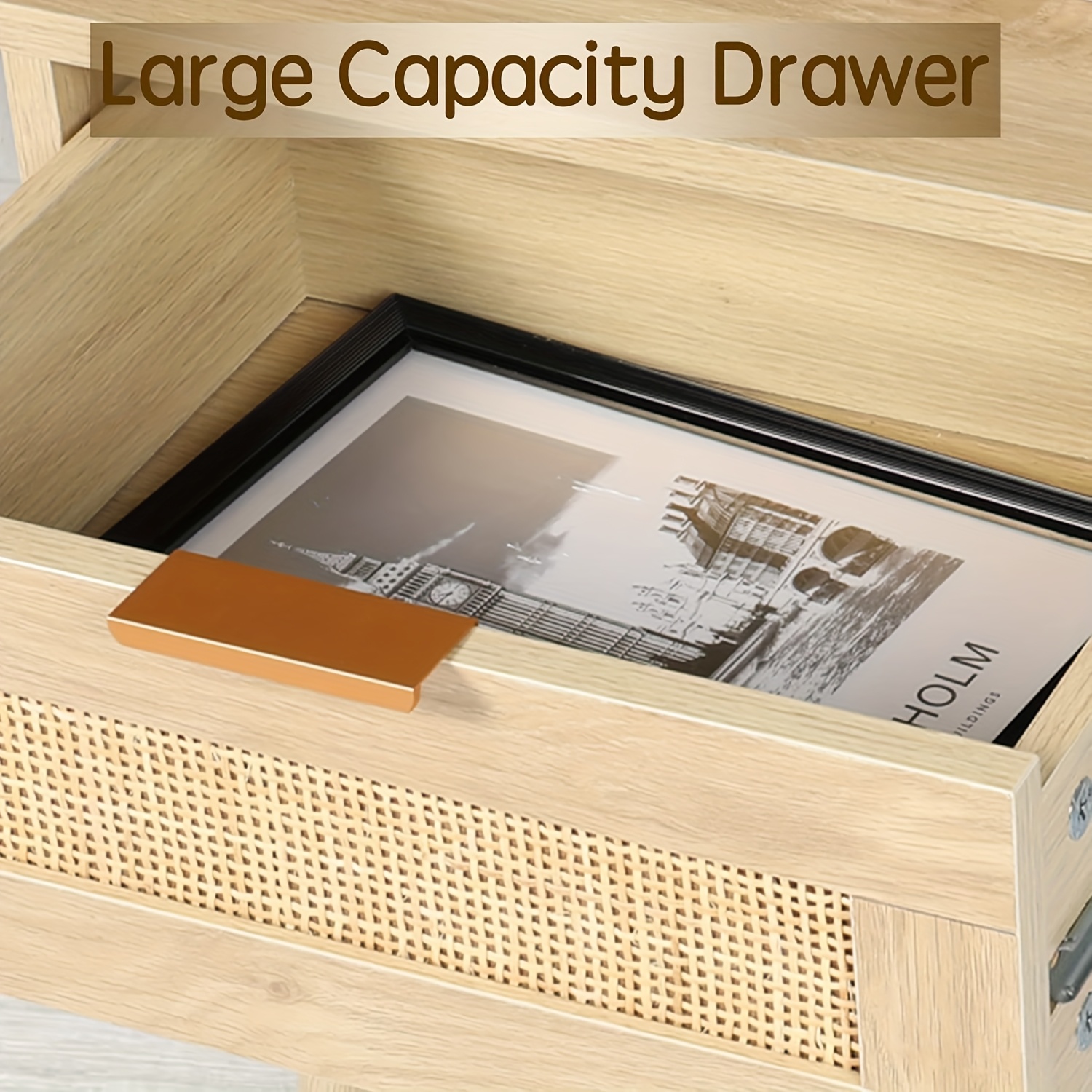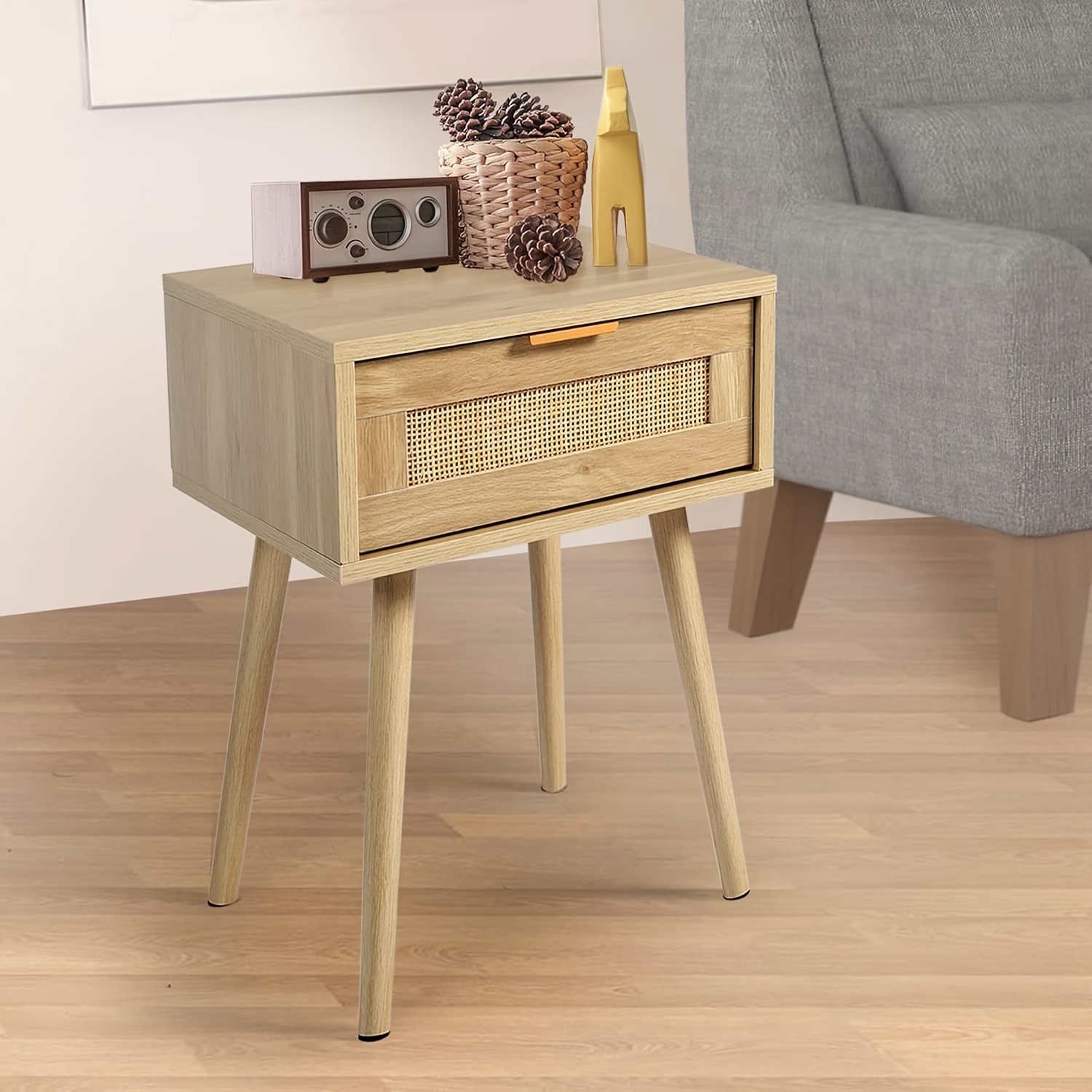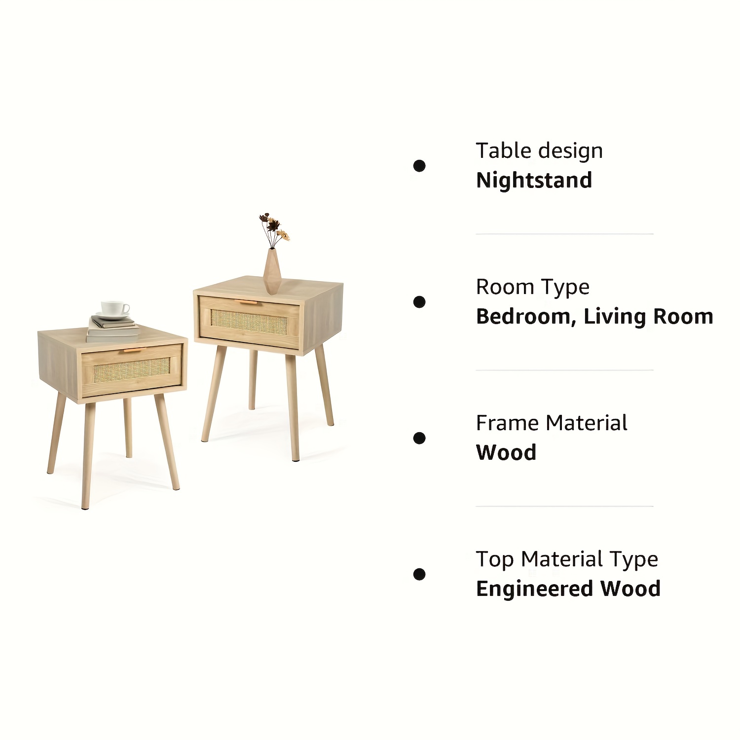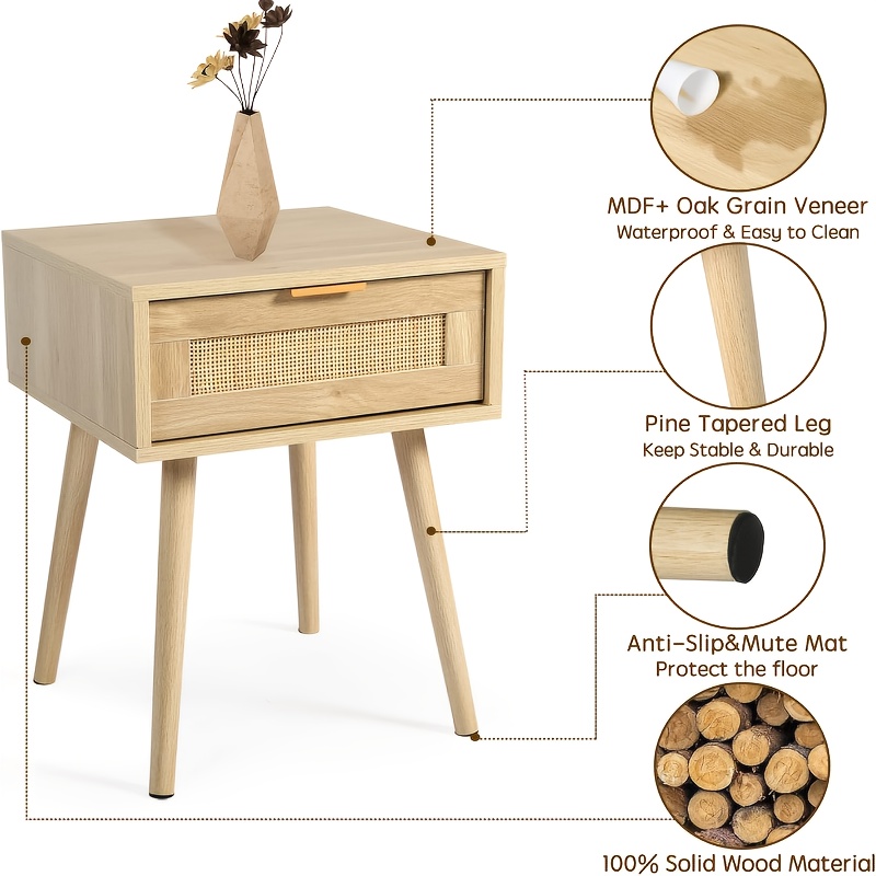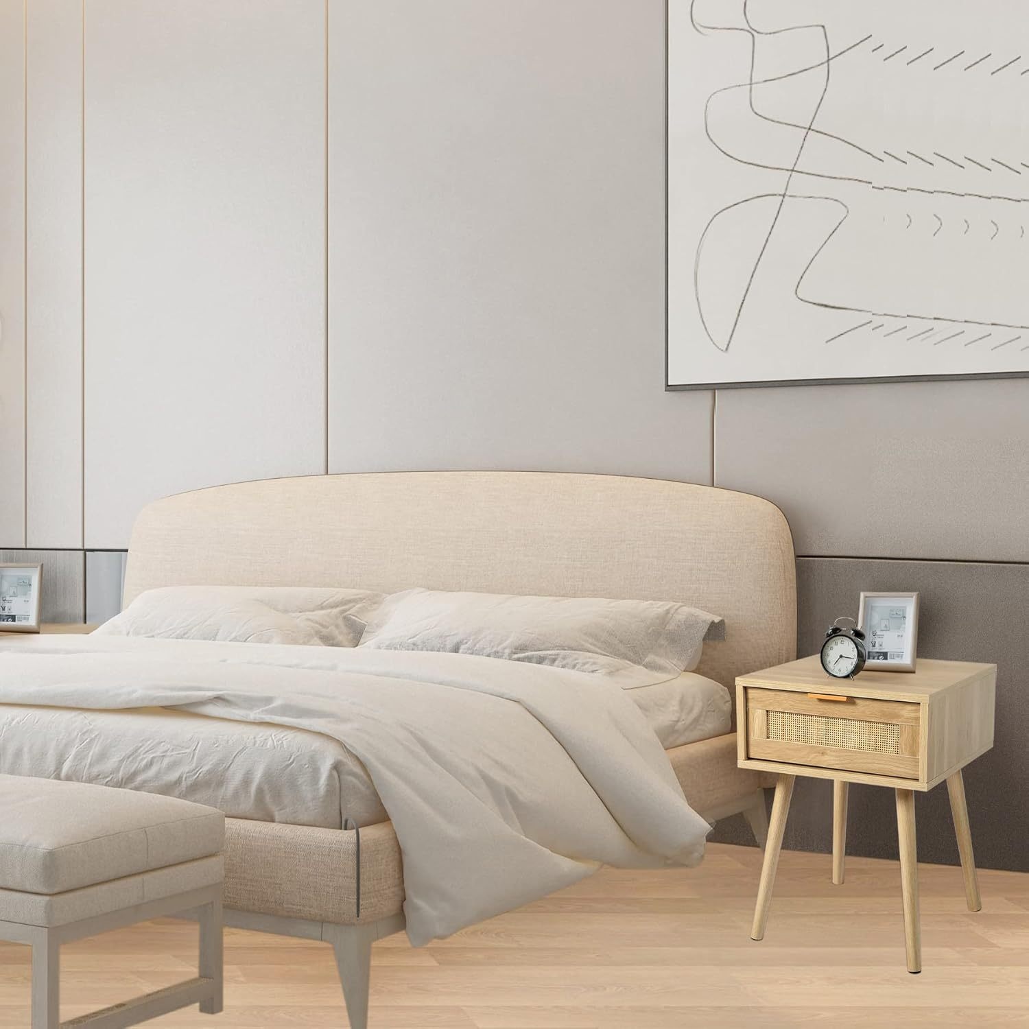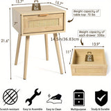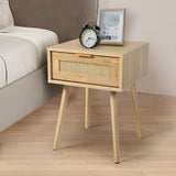 Kinder King Nightstands Set Of 2 with Rattan Drawer, Modern Night Stand for Bedrooms